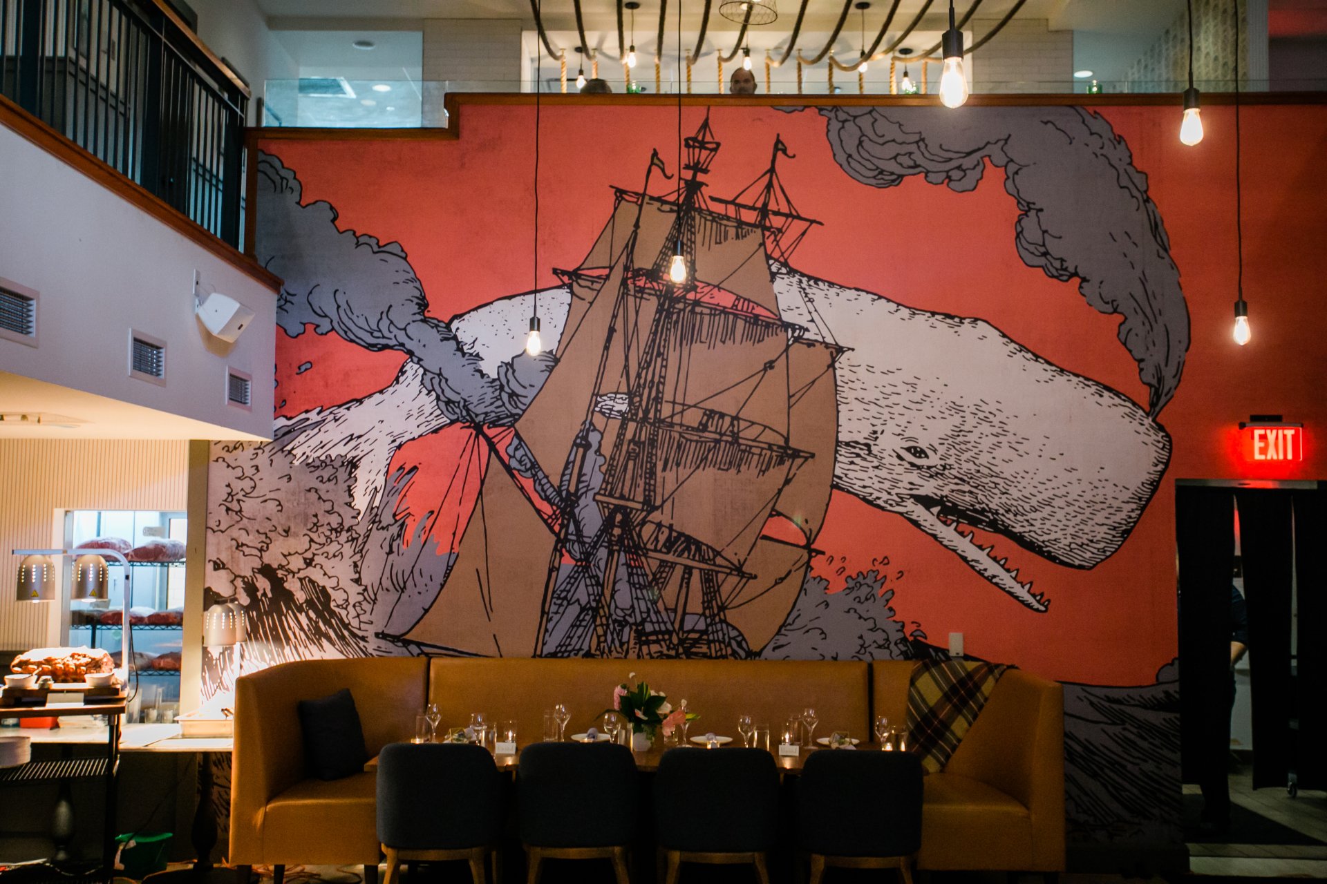 or, The Whale is harbored next to the Distrikt Hotel in the historic Salvation Army building with it's deep-seated iron city roots and ornate 1940's character. The newly invigorated gymnasium is the home to or, The Whale, where you'll find a refurbished second level loft track for catwalk seating and an upstairs bar.